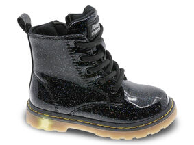 Bota infantil em pele sintética. Sistema de aperto com cordão e fecho de correr para calçar e ajustar facilmente. Sola com luz LED para um andar divertido.