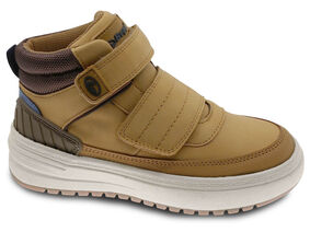Bota juvenil em pele sintética. Aperta com velcro para calçar e ajustar facilmente. Sola de borracha e antiderrapante.
