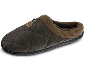 Chinelo interior para homem, em têxtil. Forro quente e confortável. Sola antiderrapante de borracha.