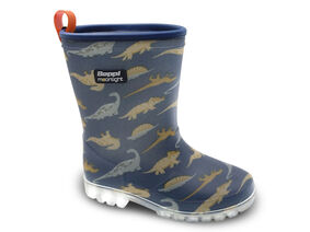 Galocha infantil em borracha, com estampado "espaço". Sola com luz LED para um andar divertido.