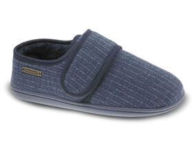Pantufa para homem em têxtil. Forro quente e confortável, com velcro para ajustar facilmente. Sola antiderrapante.