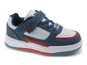 Sapato casual em pele sintética. Sistema de aperto com velcro e elástico para calçar e ajustar facilmente. Sola antiderrapante de borracha.