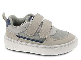 Sapato casual infantil, em pele sintética e têxtil, com reforço da biqueira em pele. Aperta com velcro para calçar e ajustar facilmente. Palmilha "Refresh" anti-transpirante. Sola antiderrapante de borracha, com design exclusivo.
