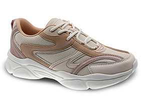 Sapato casual para senhora em pele sintética e têxtil. Aperta com cordão para um bom ajuste do pé. Sola ultra leve.