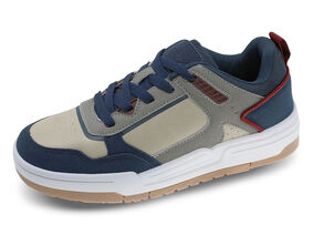 Sapato casual para teenager, em pele sintética e têxtil. Aperta com cordão para um bom ajuste do pé. Sola de borracha antiderrapante.