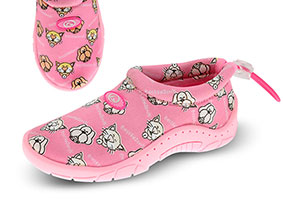 Sapato de água para infantil, em neoprene. Muda de cor em contacto com a água. Práticos e confortáveis com ajuste traseiro. Sola antiderrapante de borracha.